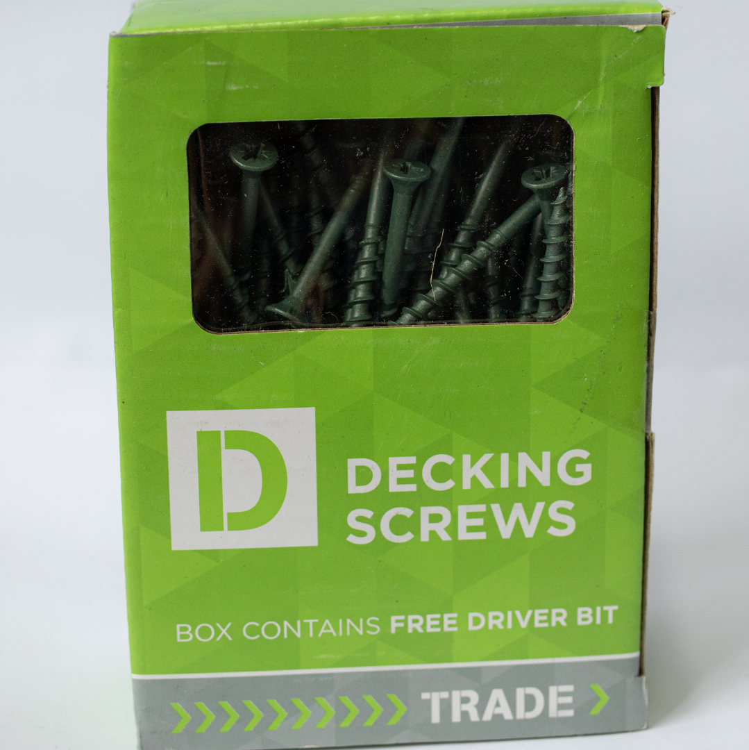 We offer 4.5 x 60 decking screws in boxes of 200 and 500 for collection or delivery.